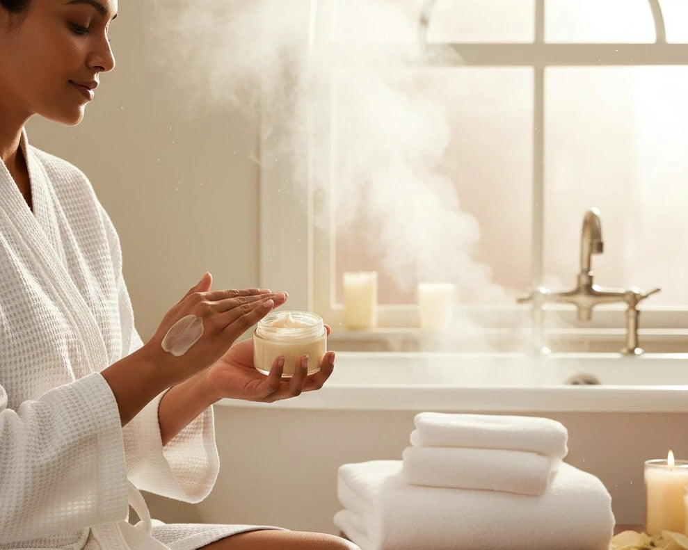 Massage a generous amount of body butter onto damp skin after showering.